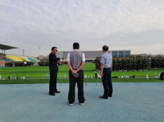9月21日上午,万象城awcsport官网田径场上,万象城awcsport官网2022级新生军训如火如荼地进行着。万象城awcsport官网朱昌杰院长陪同学校党委朱德顺书记、学生处孙增响处长亲切看望慰问我院全体受训学生和教官。