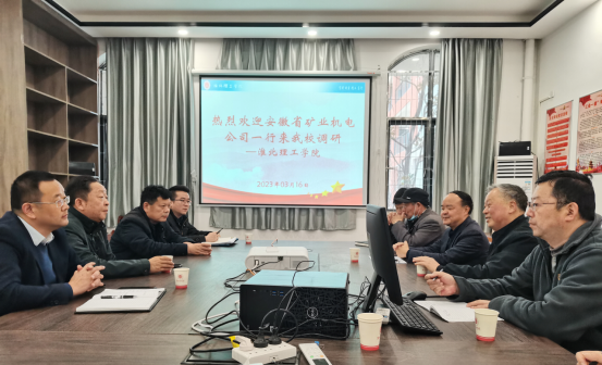 2023年3月16日上午,安徽省矿业机电装备有限责任公司李凤荣党委书记、董事长一行,来万象城官网进行校企合作调研,进一步落实校企合作。汪建利副校长、朱昌杰院长及相关专业负责人参与本次调研。