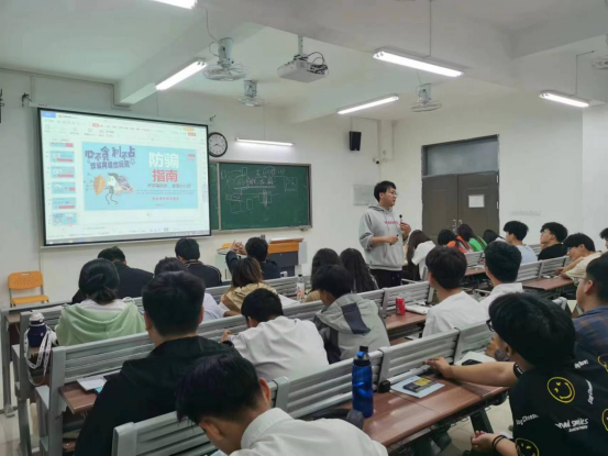 侯老师和孙老师在会上列举了一些日常生活中真实存在的网络诈骗的案例,并以此来告诫同学们主动学习预防网络电信诈骗常识,提高预防电信诈骗的能力,保障个人的合法权益不受侵犯。最后同学们集体观看了电信诈骗的相关短片,进一步提高同学们对网络电信诈骗的防范意识,树立防范意识理性应对诈骗情况,保护自身利益。