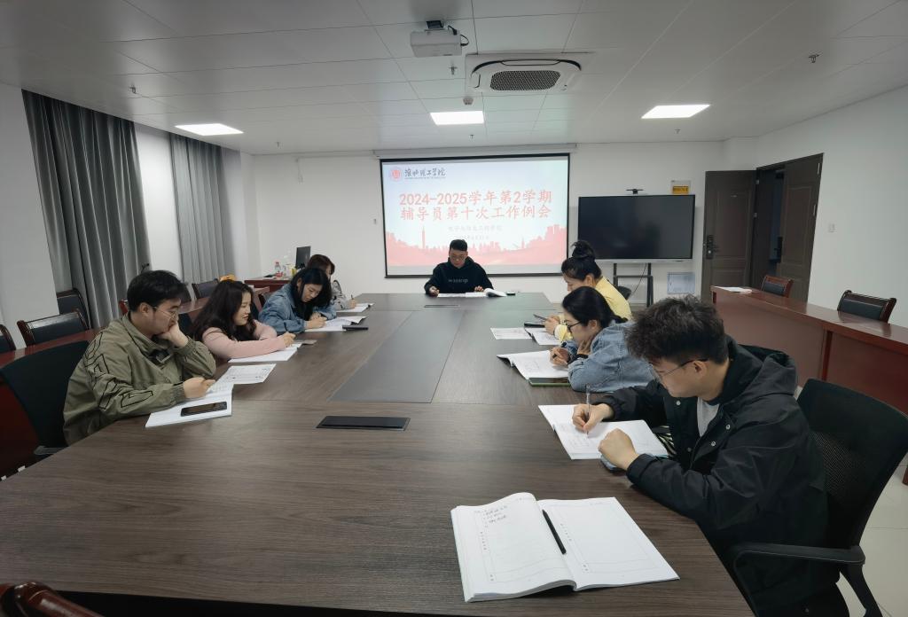 2025年4月22日,万象城awcsport官网召开辅导员第十次工作例会。学院书记助理侯绪芳、全体辅导员出席会议,会议围绕毕业生就业推进、征兵政策宣讲、入党入团工作安排等重点内容展开深入讨论与工作部署,旨在切实提升学生工作质量,助力学生成长成才。