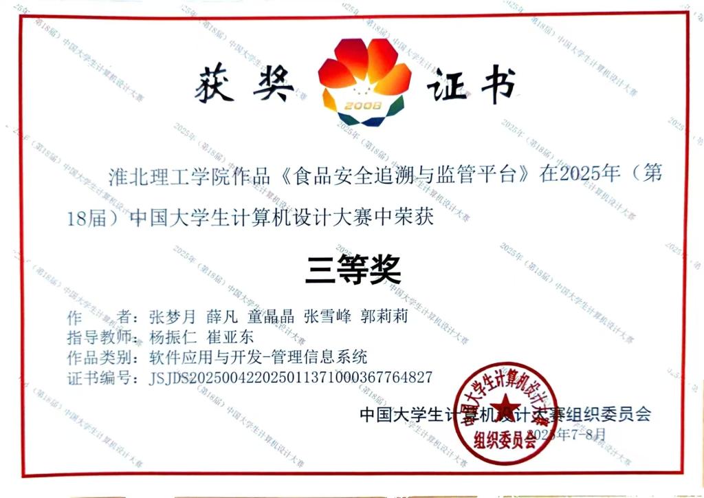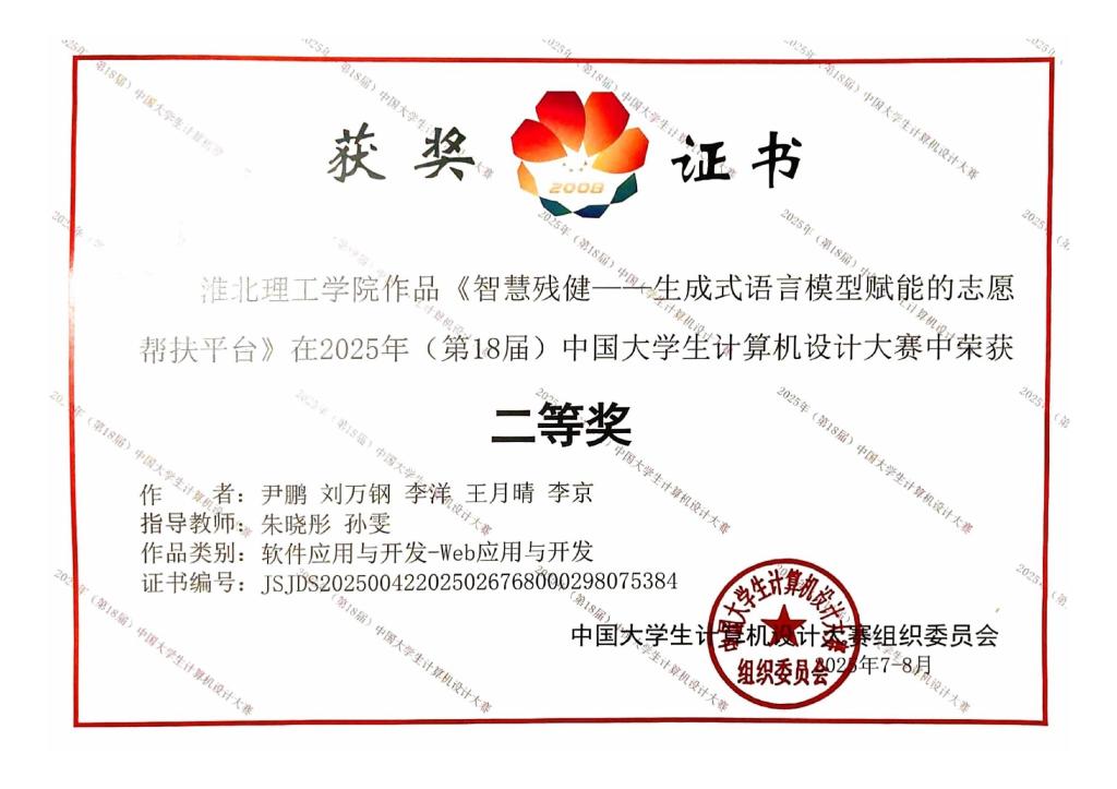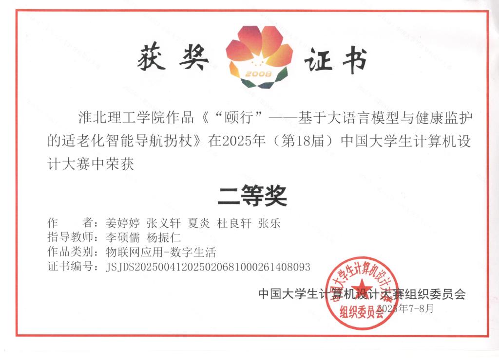 作为全国极具影响力的学科竞赛,中国大学生计算机设计大赛致力于促进高校计算机教育模式革新,增强学生的创新思维与实践操作能力。本届国赛汇聚了来自全国各地高校的精英团队,赛场角逐异常激烈。我院参赛队伍在备赛期间,从项目选题的精准定位、核心技术的攻坚研发到作品细节的反复雕琢,投入了数月的心血,最终在软件应用与开发、物联网应用等多个竞赛领域成功突围。在软件应用与开发赛道尹鹏等同学获得二等奖1项、张梦月等同学获得三等奖1项;在物联网应用赛道姜婷婷等同学获得二等奖1项、吴奇豪等同学获三等奖1项。
