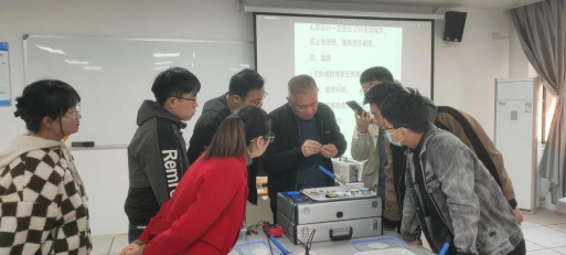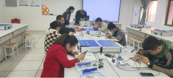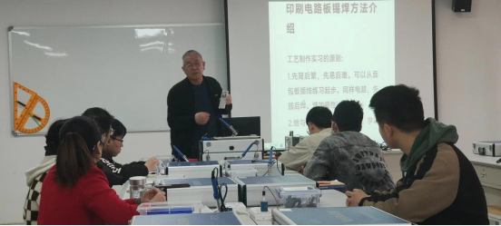 在初步掌握掌握电子实训技能后,青年教师便开始焊接电路板,各位青年老师相互交流、切磋技艺、取长补短、共同进步,为提高电子实训整体的教学质量起到了促进作用。