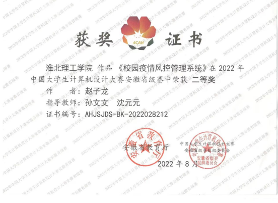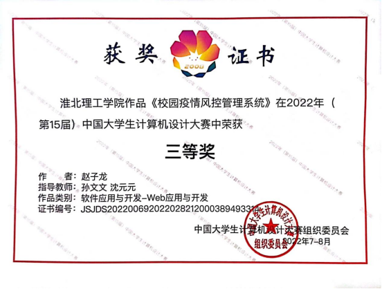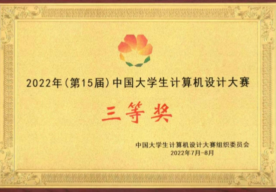 2022年(第15届)中国大学生计算机设计大赛全国总决赛线上答辩工作8月底圆满落下帷幕,万象城官网参赛团队再创佳绩。经过严格的专家评审和激烈的网络答辩,万象城awcsport官网赵子龙同学在软件开发大类中获得国家三等奖。