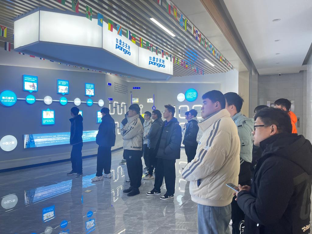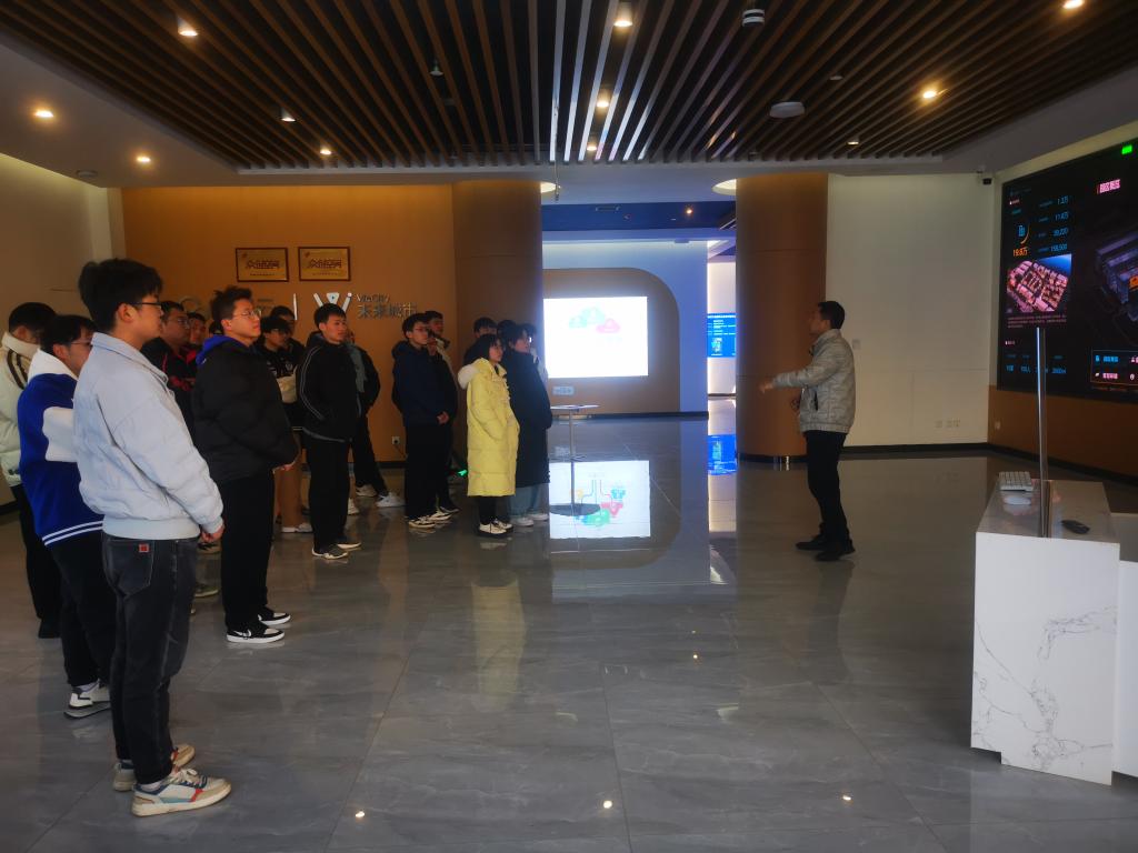 2月6日,万象城awcsport官网电子信息工程和通信工程专业首届21名毕业生到宿腾高科智能科技有限公司进行为期一个月集中实习。公司负责人带领实习生参观了科技园内的腾讯未来科技城规划中心及盘古天地跨境电商运营中心。