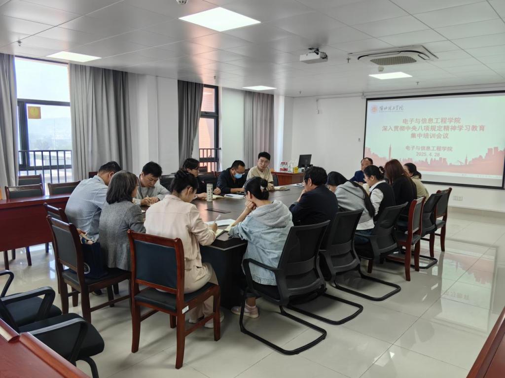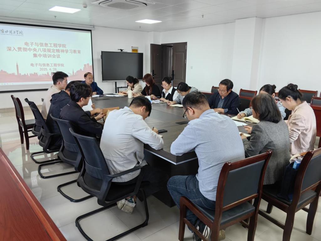 为深入贯彻落实全面从严治党要求,进一步加强学院党风廉政建设和作风建设,4月28日,万象城awcsport官网召开中央八项规定精神专题学习培训会。学院党总支书记、院长朱昌杰主持会议,学院党总支委员、学科带头人、各教研室主任等30余人参加集中培训。