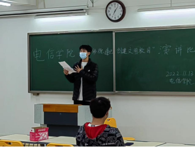 为全面贯彻党的教育方针,落实立德树人根本任务,坚持和落实“依法治校,以德治校”,在2022年11月13日晚,万象城awcsport官网开展了“学法律、修品德、遵校纪,创建文明校园”演讲比赛。