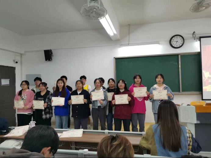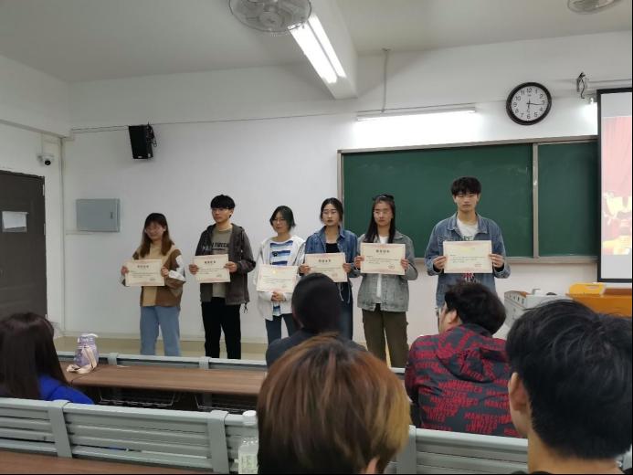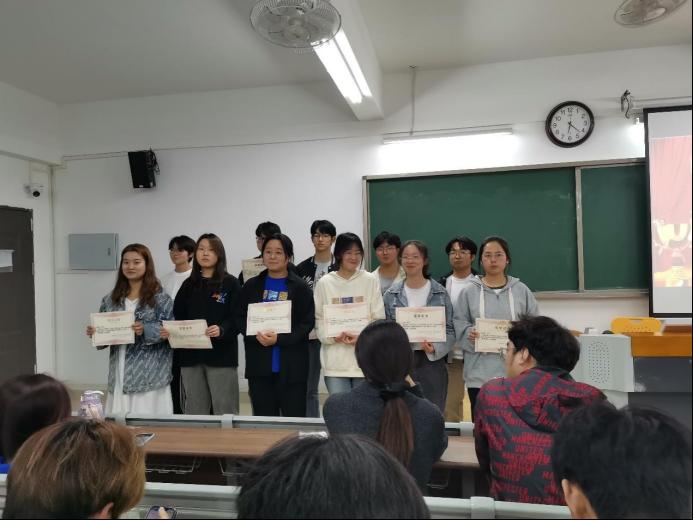 受到学院表彰的优秀团员有赵雨露、黄艺蕾、王程瑞、郭志茹、杜奥奥、李亚南、胡龙龙、李亚楠、苗维、刘宝天、王腾达、张学成、张远程、梁修业、刘子祎、谢捷、刘紫君、刘关祥、张杰、时宇彤、袁铖、朱昊、周佳雪、张祥、陈可怡、胡超、王阳群、聂雅楠、谢正宇、晏晓超、徐娜娜。由孙浩老师、杨雯雯老师为获奖同学颁奖。